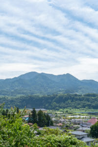 遠くに見えるのが南部小富士とも称される「名久井岳(なくいだけ)」です。標高は615m。青森県の東側、いわゆる南部地方の南部町と三戸町にまたがっています。この一帯には名久井岳県立自然公園や馬淵川をはじめ、多くの自然が残っています。